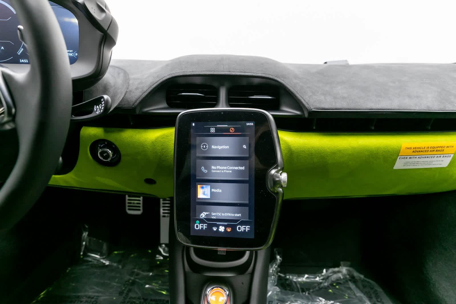 - Radio: McLaren Infotainment System II -inc: 8" HD touch screen, HD driver display, on-board memory, audio media player, FM radio, DAB radio (SiriusXM for Federal), Bluetooth® telephony, smartphone integration package - Apple CarPlay, USB connectivity x2 (1x USB-C x USB-B), navigation w/cluster 3D display and turn-by-turn, 5-speaker McLaren audio system and user profiles (ergonomics, favorites)
