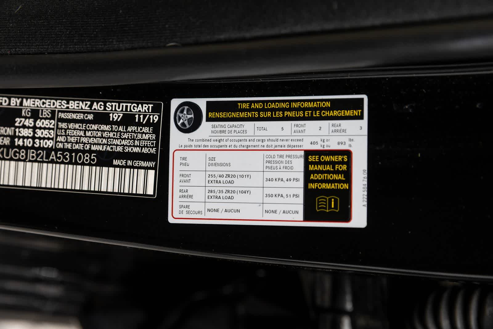 - Tires: 255/40R20 Fr & 285/35R20 Rr