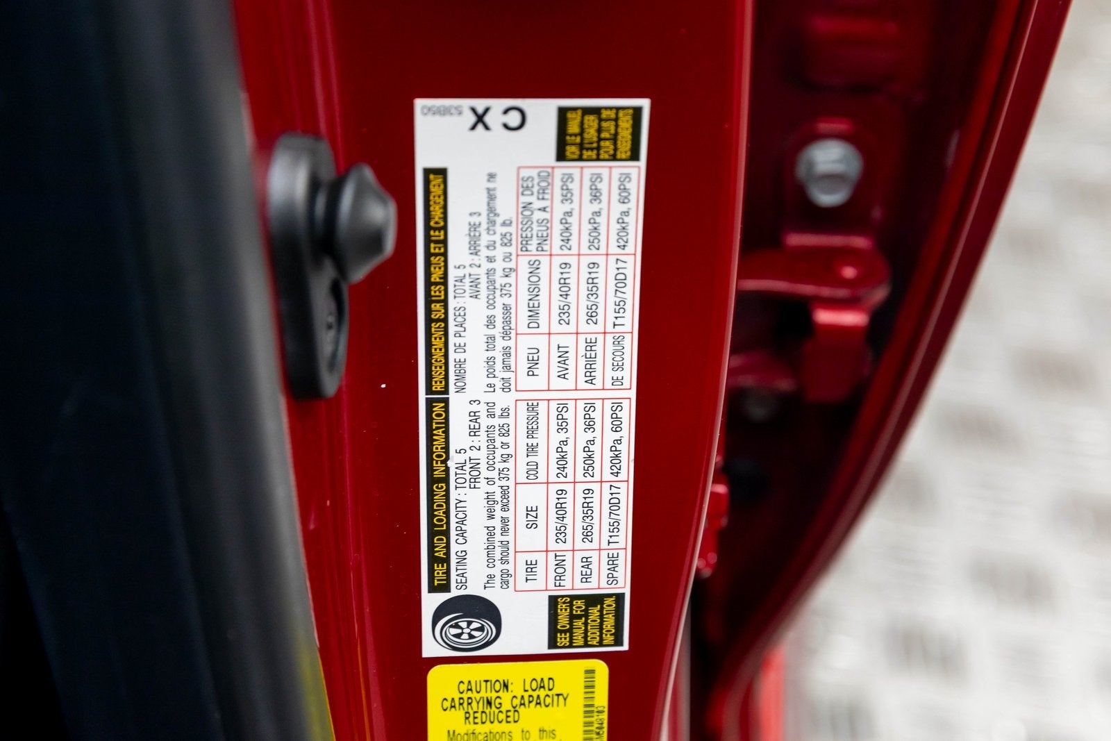 - Front Tire Size: P235/40YR19