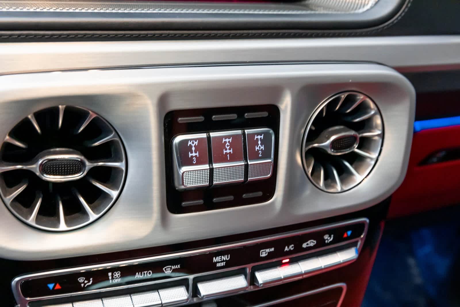 AMG® Front/Rear Red Brake Calipers, AMG® Performance Nappa/DINAMICA Steering Wheel, Diamond Stitching, Drive-Dynamic Multicontour Front Seats w/Massage, Front Ventilated Seats, G manufaktur Interior Plus, G manufaktur Interior Plus Package, Heated Steering Wheel, Nappa Leather Dashboard, Rapid Heating Functionality for Front Seats, Seat Comfort Package, Spare Wheel Cover in Night Black magno, Wheel Locking Bolts, Wheels: 21 AMG® Matte Black Twin 5-Spoke Alloy.
