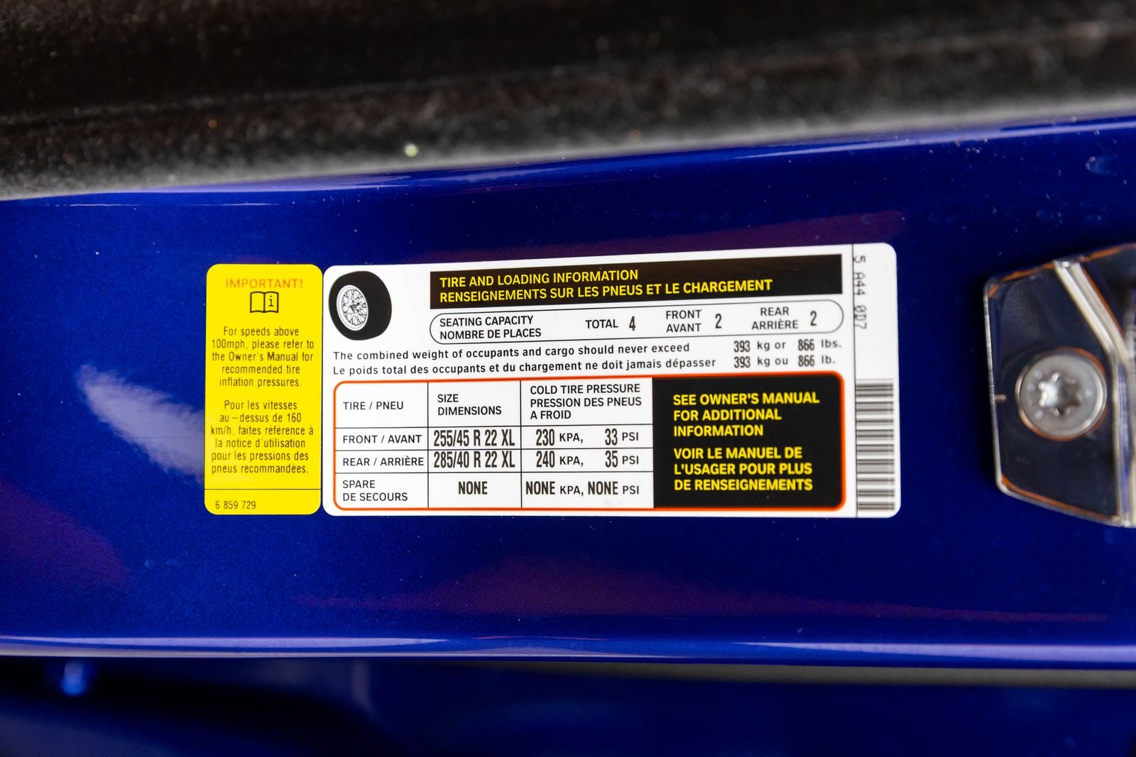 - Tires: P255/50ZR21 Fr & P285/45ZR21 Rr Run Flat