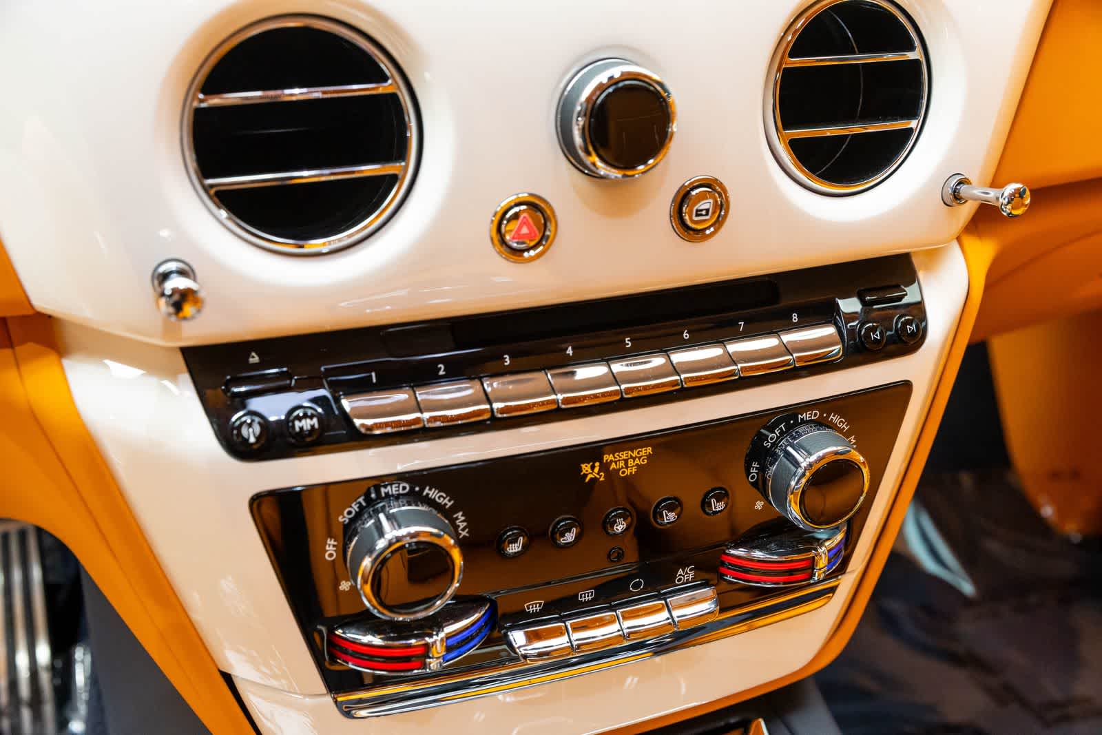 Mandarin w/CC Leather Seat Trim, 16 Speakers, 4-Wheel Disc Brakes, ABS brakes, Air Conditioning, AM/FM radio: SiriusXM, Anti-whiplash front head restraints, Auto tilt-away steering wheel, Auto-dimming Rear-View mirror, Automatic temperature control, CD player, Compass, Driver door bin, Driver vanity mirror, Dual front impact airbags, Dual front side impact airbags, DVD-Audio, Emergency communication system: Rolls-Royce Assist, Front anti-roll bar, Front dual zone A/C, Front reading lights, Garage door transmitter, Genuine wood console insert, Genuine wood door panel insert, Heads-Up Display, Heated steering wheel, Knee airbag, Low tire pressure warning, Memory seat, Navigation System, Occupant sensing airbag, Overhead airbag, Power driver seat, Power steering, Power windows, Radio data system, Radio: AM/FM/CD/MP3 Satellite Audio System, Rear air conditioning, Rear dual zone A/C, Rear window defroster, Remote keyless entry, Steering wheel memory, Steering wheel mounted audio controls, Traction control, Weather band radio.