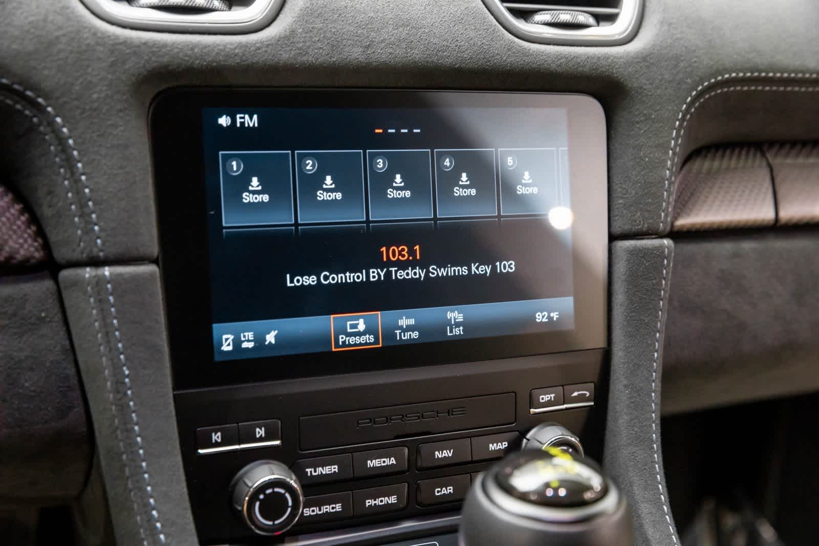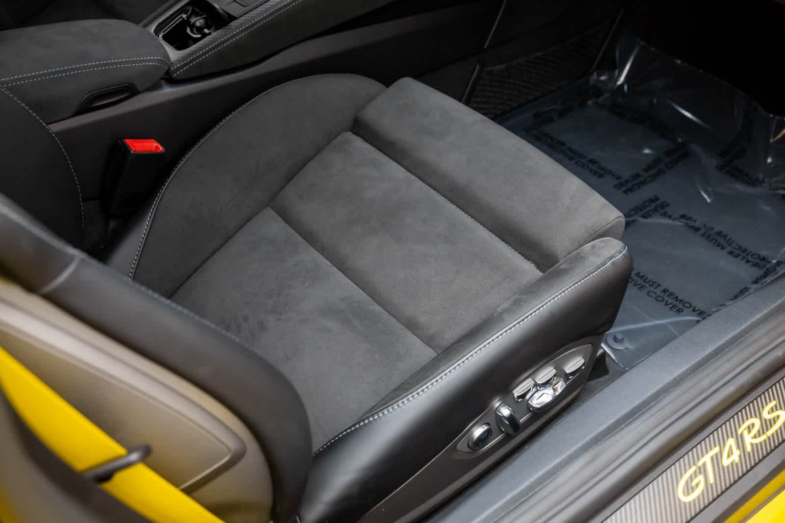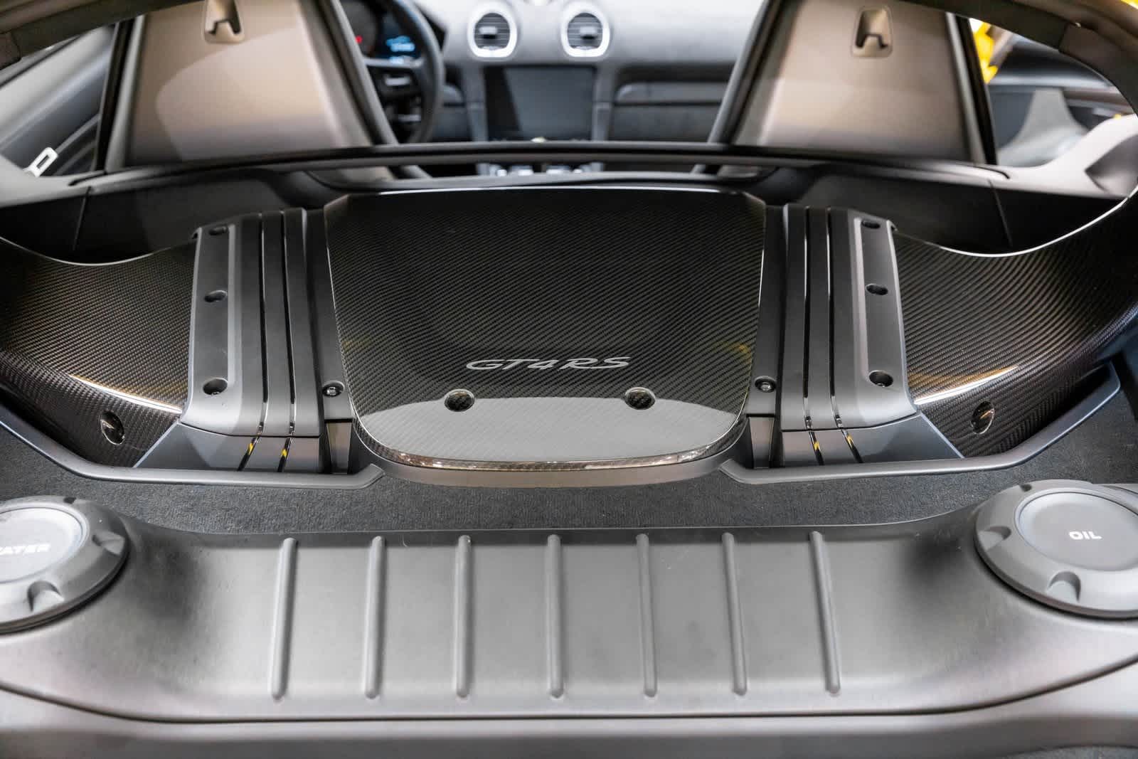 18-Way Adaptive Sport Seats Plus, Accent Package Logos, Auto Dimming Mirrors w/Integrated Rain Sensor, BOSE Surround Sound System, Brake Calipers in High Gloss Black, Chrono Package, Dashboard Trim Package in Leather/Race-Tex, Door Handles in High Gloss Black, Door Pull Loops in Racing Yellow, Door Trim Package in Leather/Race-Tex, Front Axle Lift System, Front Trunk Lid & Wing in Exposed Carbon Fiber, Illuminated Door-Sill Guards in Carbon Fiber, LED Headlights w/Porsche Dynamic Light System, Light Design Package, Luggage Net in Passenger Footwell, Pers Vehicle Keys Painted & 1 Key Pouch in Leather, Porsche Ceramic Composite Brakes, PORSCHE Logo on Rear in High Gloss Silver, Preparation for Porsche Dash Cam, Seat Belts in Racing Yellow, Smartphone Compartment, Smoking Package, Steering Column Casing in Leather, Steering Whl & Gear Lever/Selector in Blk Leather, Voice Control, Weissach Package, Wheels Painted in Satin Black, Wheels: 20 718 Cayman GT4 RS Forged Magnesium, Window Triangle Trims in Carbon Fiber.