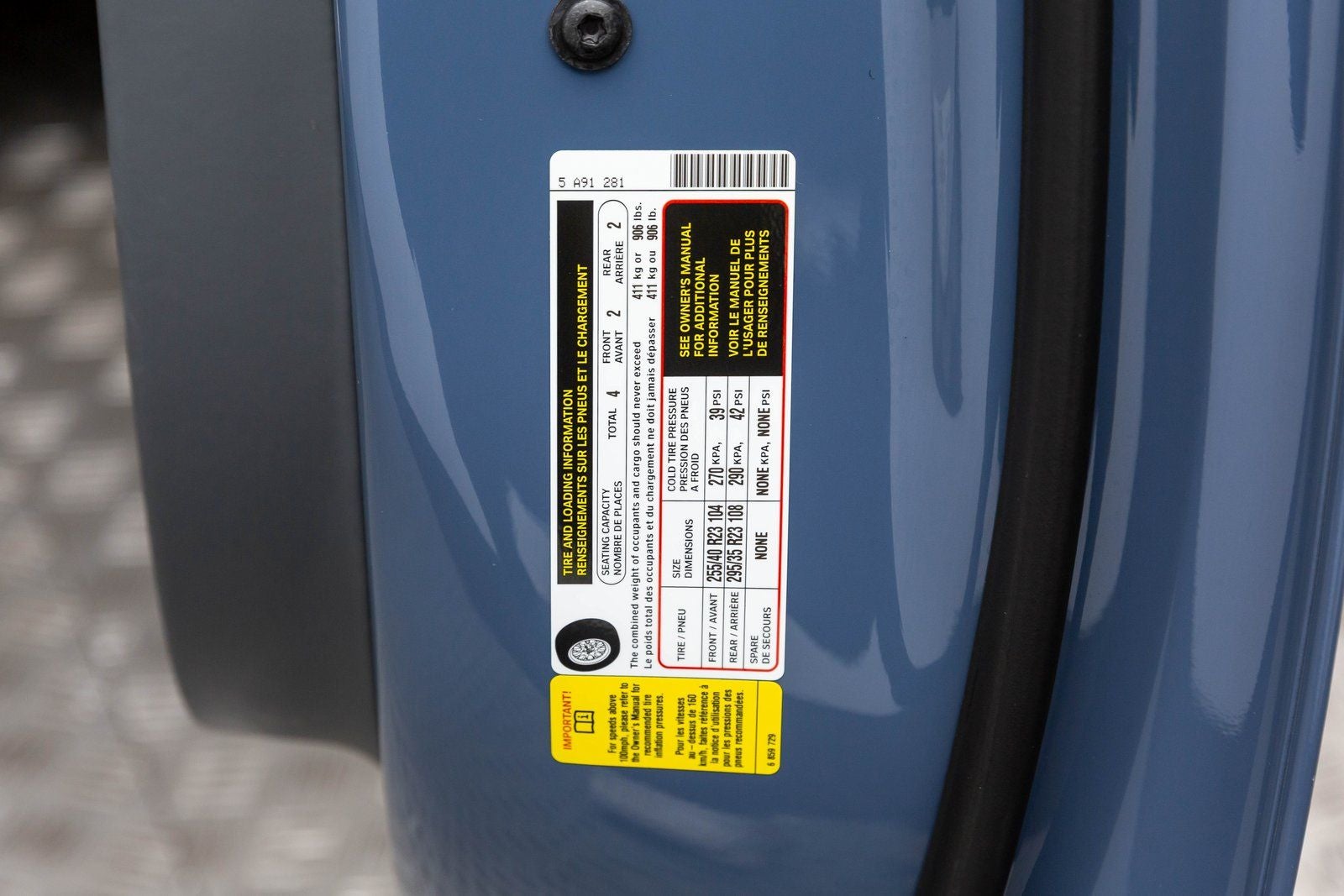 - Tires: P255/45R22 XL Fr & P285/40R22 Rr XL